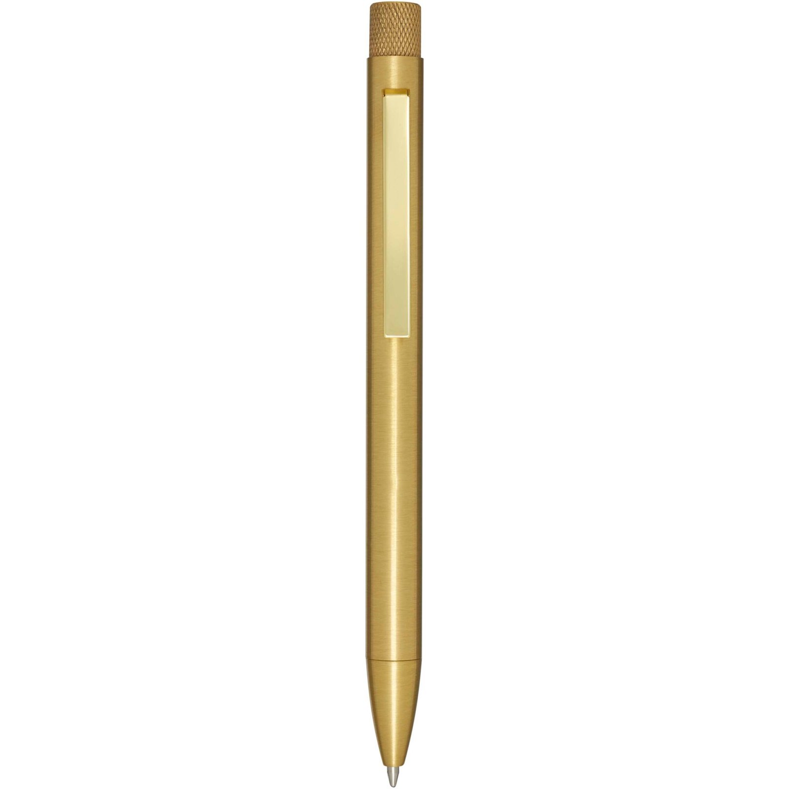 Ballpoint pen with a coloured spray coating. The button and tip are made of brass, the barrel is made of recycled brass, and the clip is made of iron. Ink colour: Black. Writing length: 1000 metres. Nib size: 1.0 mm. Delivered in a gift box.