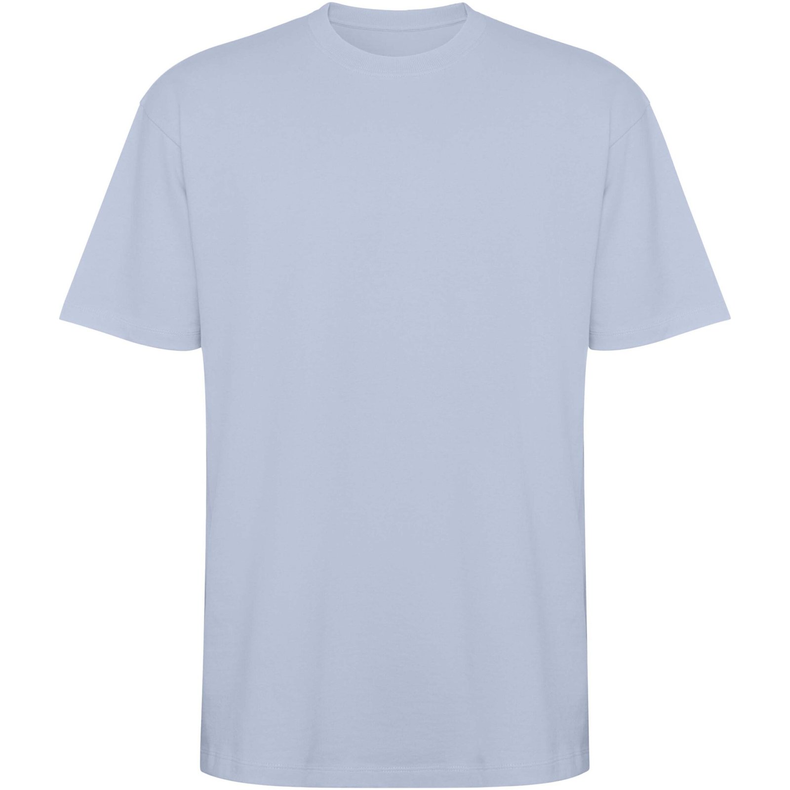 Oversized short sleeve t-shirt. Round collar trimmed in 2×1 rib with matching seam covers. Side seams. Wide double stitching on the sleeves and hem. Removable label.