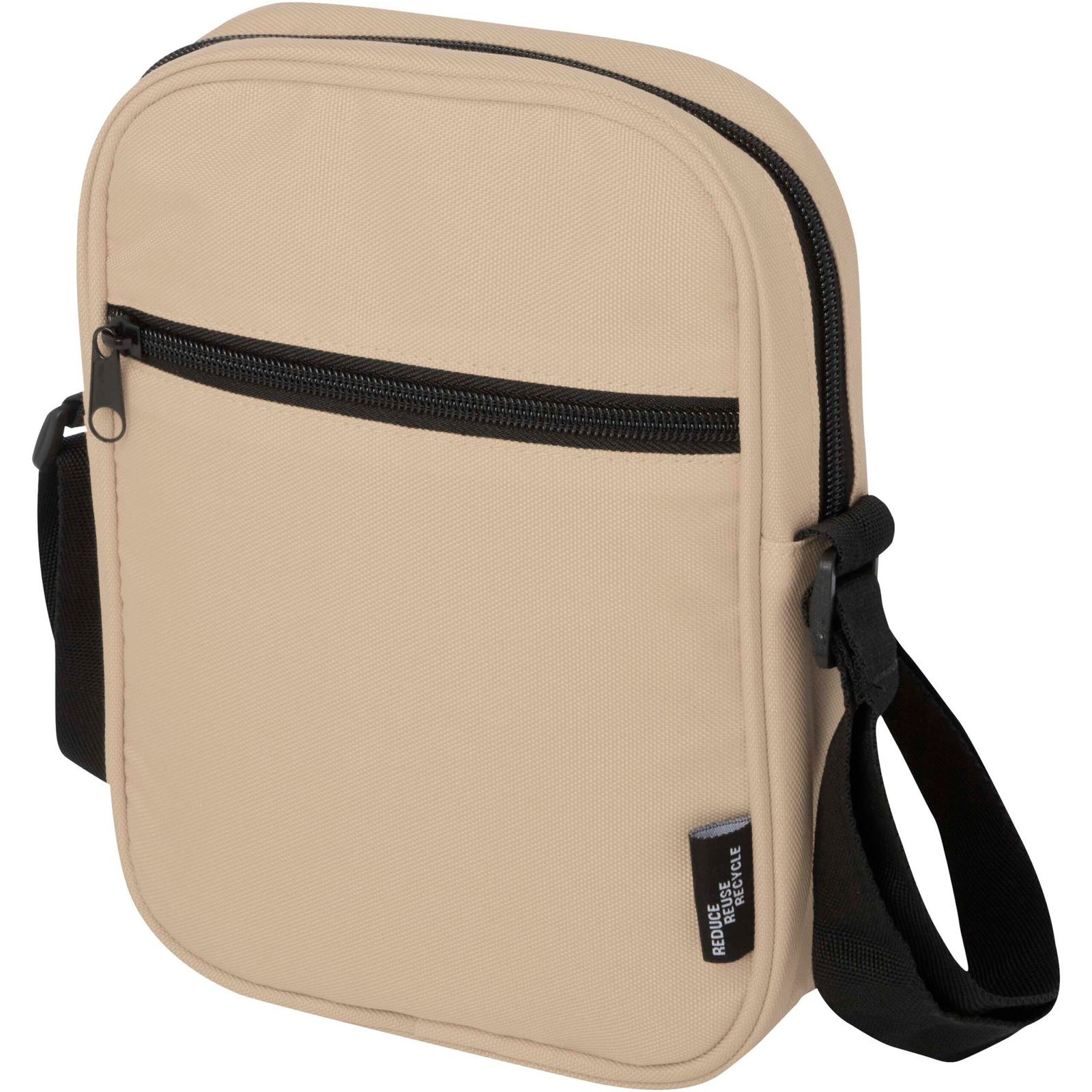 Practical and water-repellent crossbody bag made of GRS recycled polyester. It features a zipped compartment with a sleeve pocket inside to keep your everyday gadgets safely in place, a zipped front pocket for keys and valuable accessories, and an open sleeve pocket on the back for quick storage and access. With its adjustable high quality shoulder straps, the Byron crossbody bag is a perfect bag for everyday use with a minimal ecological footprint. PVC free.