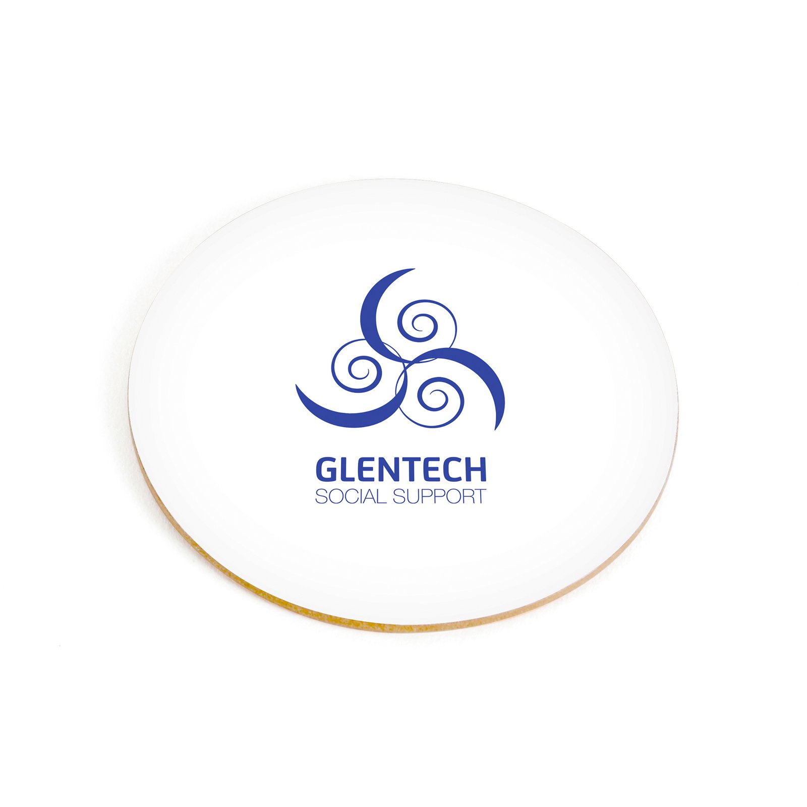 Single circular coaster with traditional cork backing.