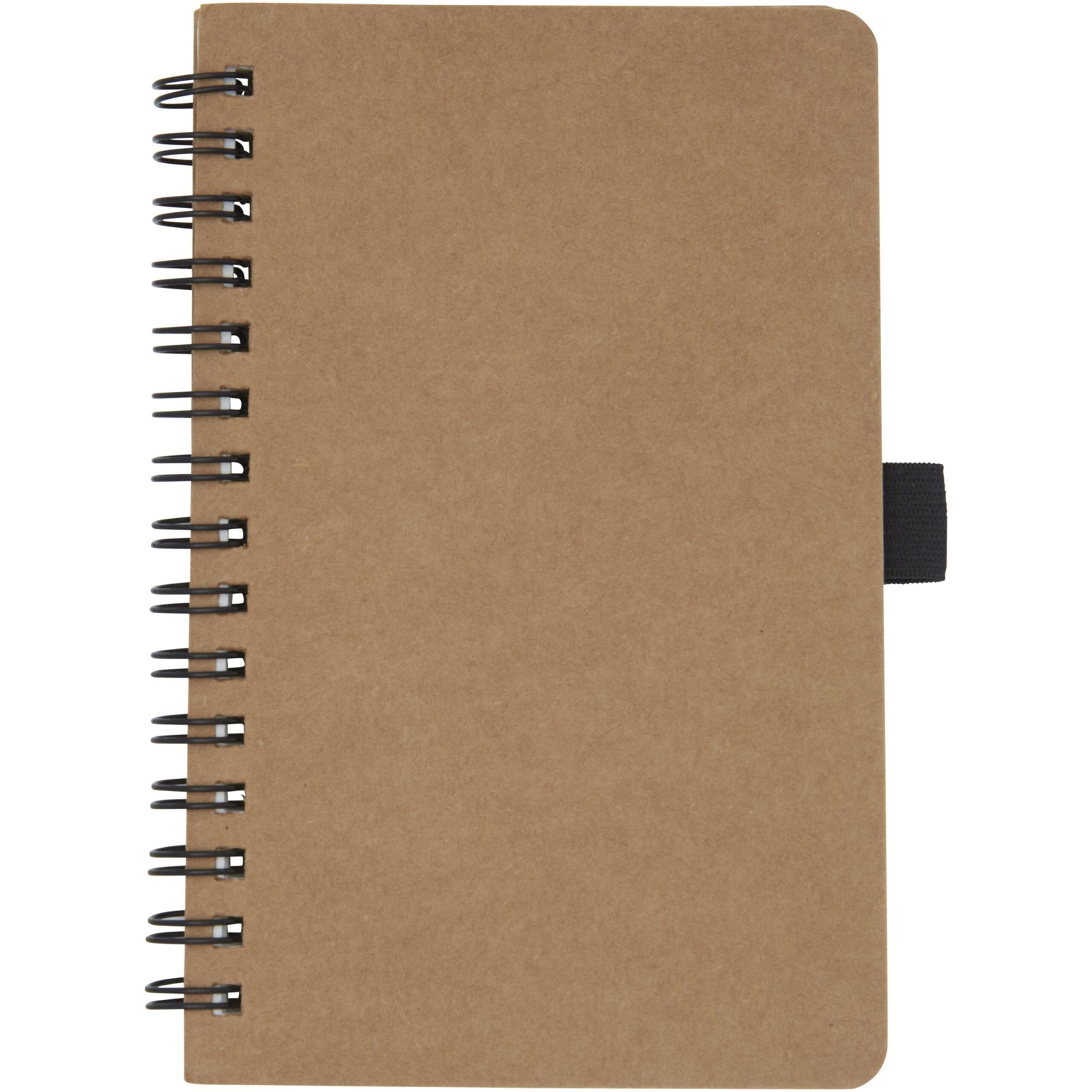A6-size wire-o recycled cardboard cover notebook with pen loop. Features 70 sheets 60 g/m² lined inner pages made from stone. Stone paper is 100% tree free and the production process uses less energy compared to recycled or new pulp paper. The paper is water and tear resistant and has a natural white colour (no bleaching involved).