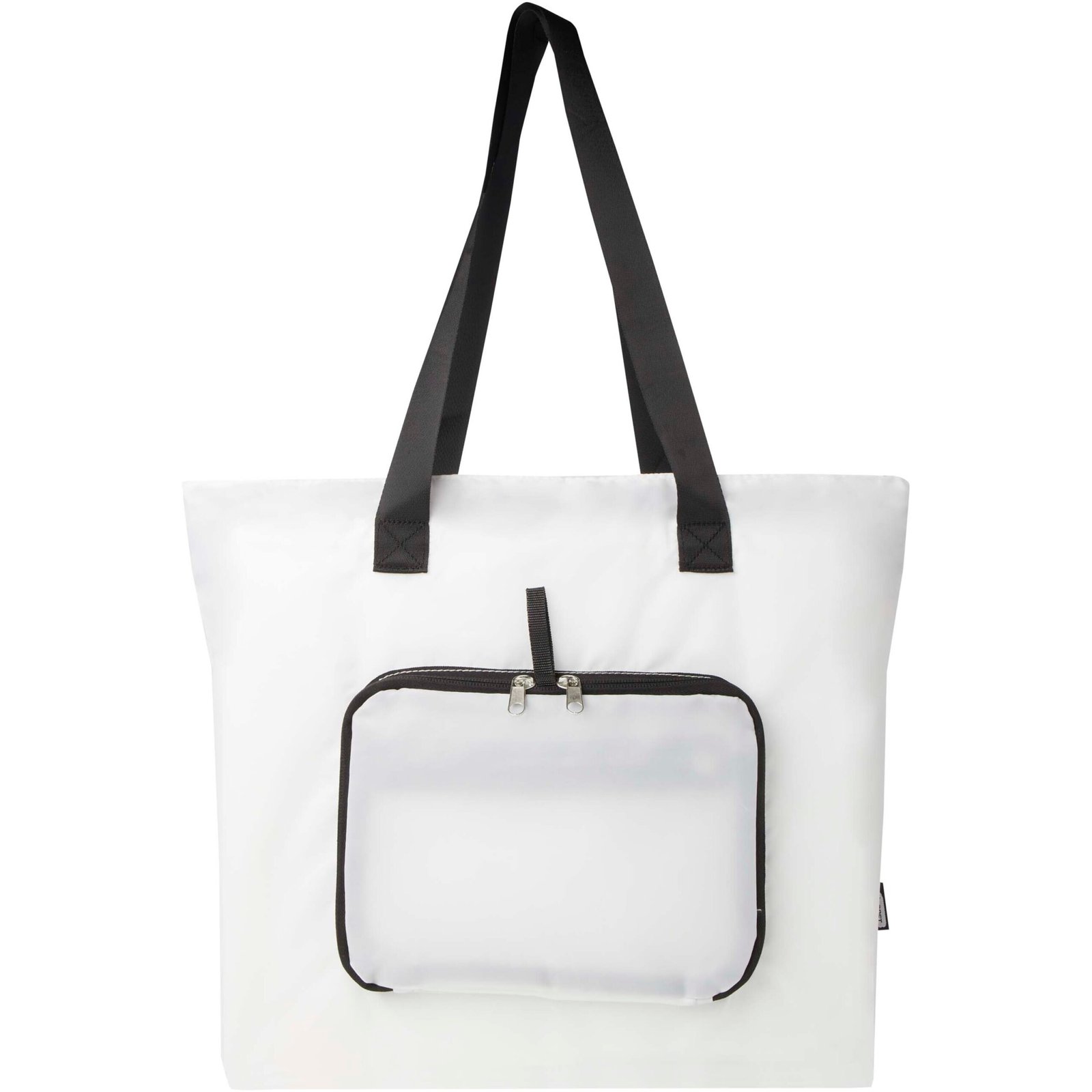 Designed for convenience and practicality, this lightweight yet durable tote bag adapts to your needs by folding neatly into a compact pouch with a webbing loop to hang or carry around easily, making it perfect for busy days, spontaneous shopping trips, or as a backup bag. Featuring a zipped main spacious compartment, a zipped front pocket, and two long handles made of quality smooth webbing material. Made of PVC free recycled polyester. Volume capacity: 16 litres.