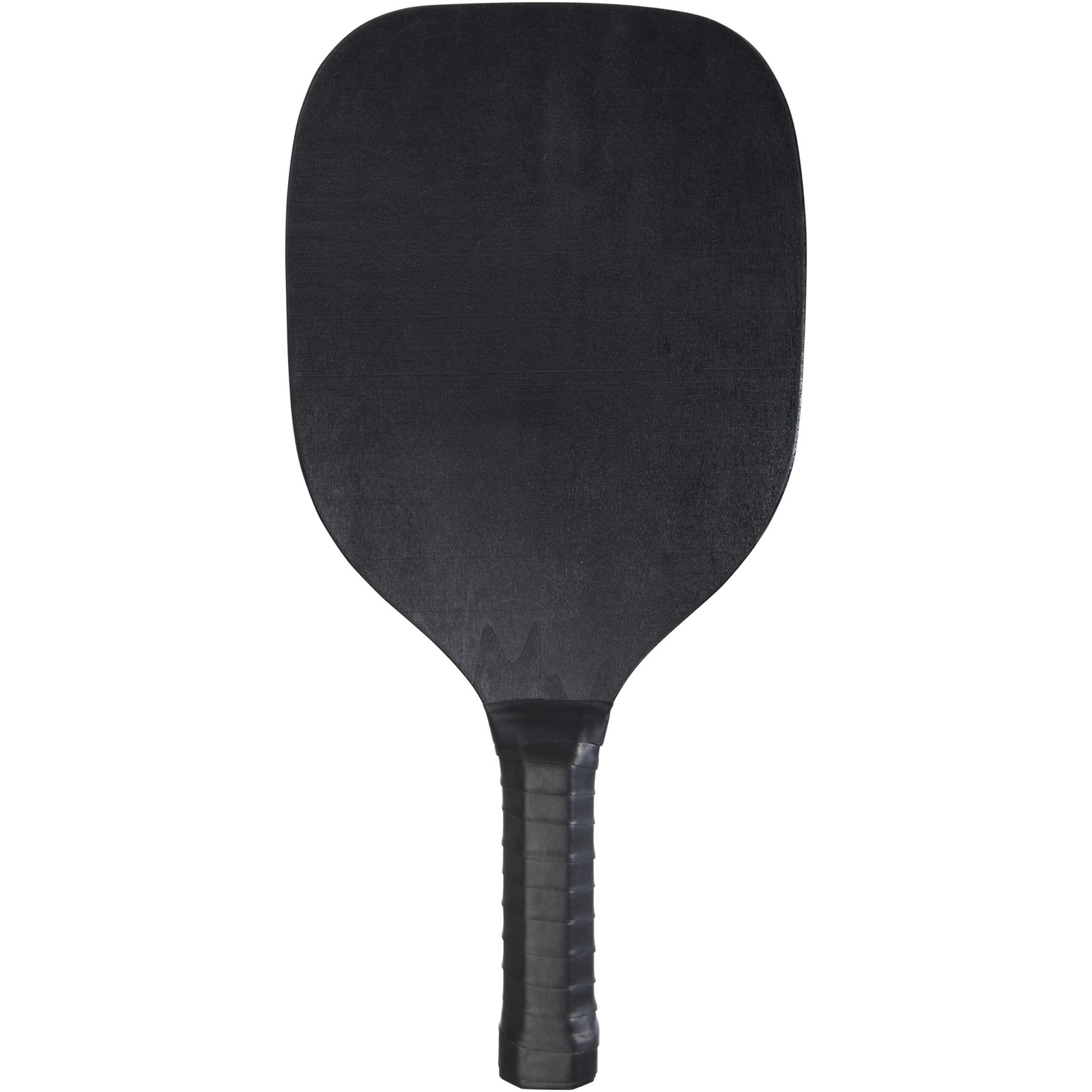 This paddle set made of poplar wood provides a lot of fun and exercise for two on the beach, in the park or the garden. The paddles have a size of 40 x 20 x 0.7 cm and are painted in black colour, providing large surface for printing any logo. The handles are wrapped with PU tape giving maximum grip during an intense game. The set is completed with 2 balls made from PP material and is packed in a mesh polyester storage pouch with a size of 45 x 26 cm. Warning! Not suitable for children under three years. Small parts. Choking hazard.
