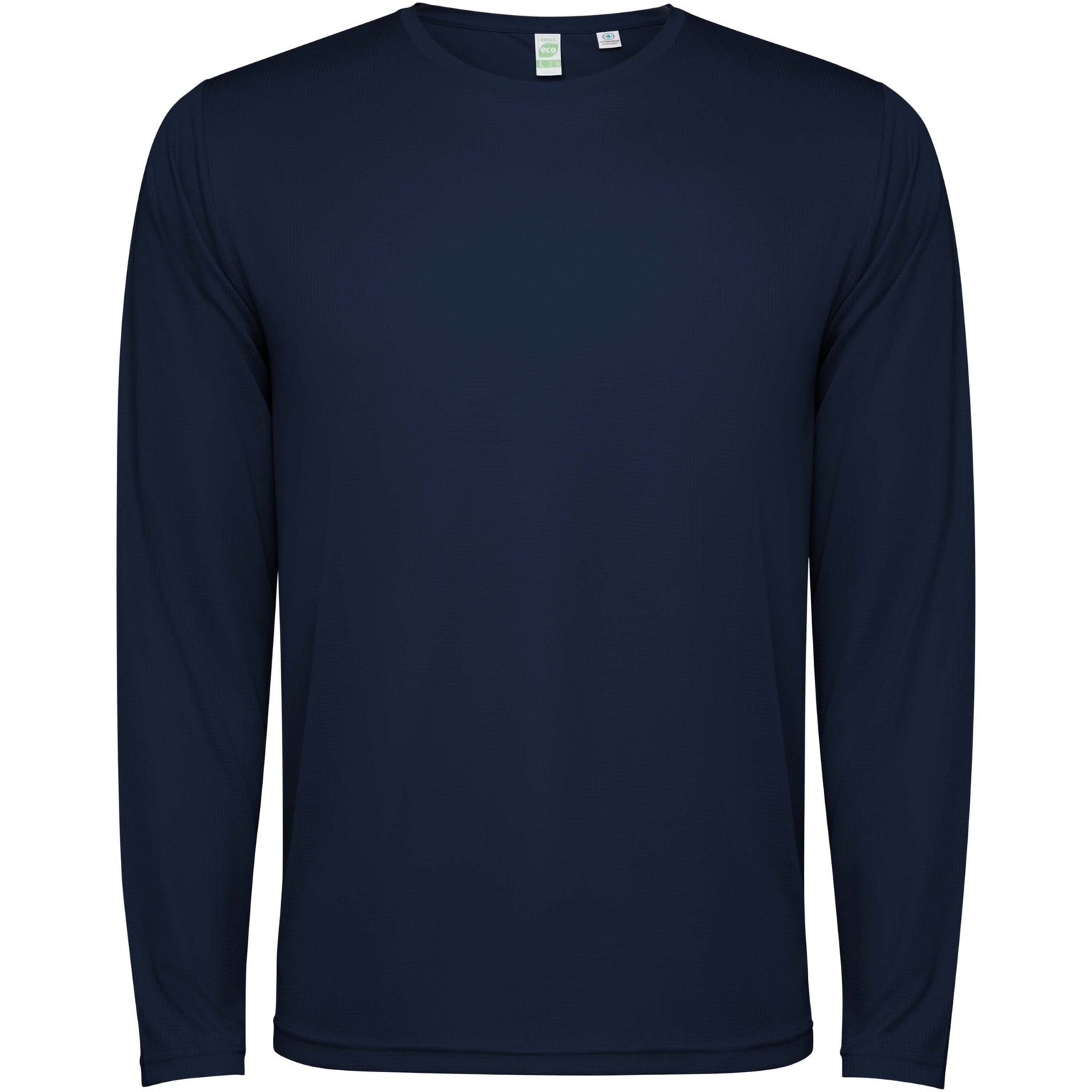 Kids long-sleeve unisex technical t-shirt. Collar with matching seams. Back hem slightly longer than the front. Side seams shifted forward.