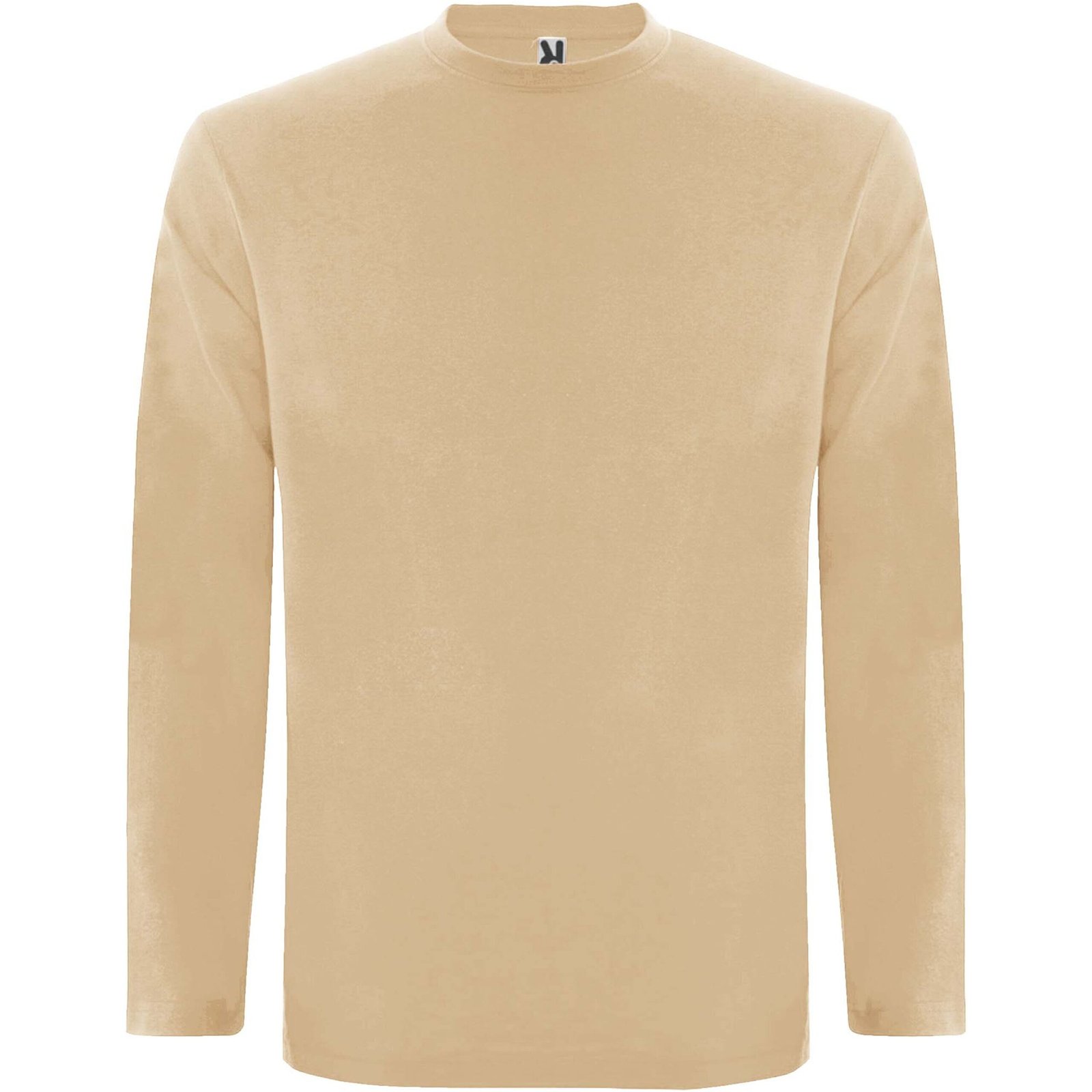 Long-sleeve t-shirt in tubular fabric and 4-layer crew neck. Reinforced covered seams in collar and shoulders. No cuffs. Removable label. Tubular design in adult sizes and side seams in kids sizes. The model is 185 cm and is wearing size L.