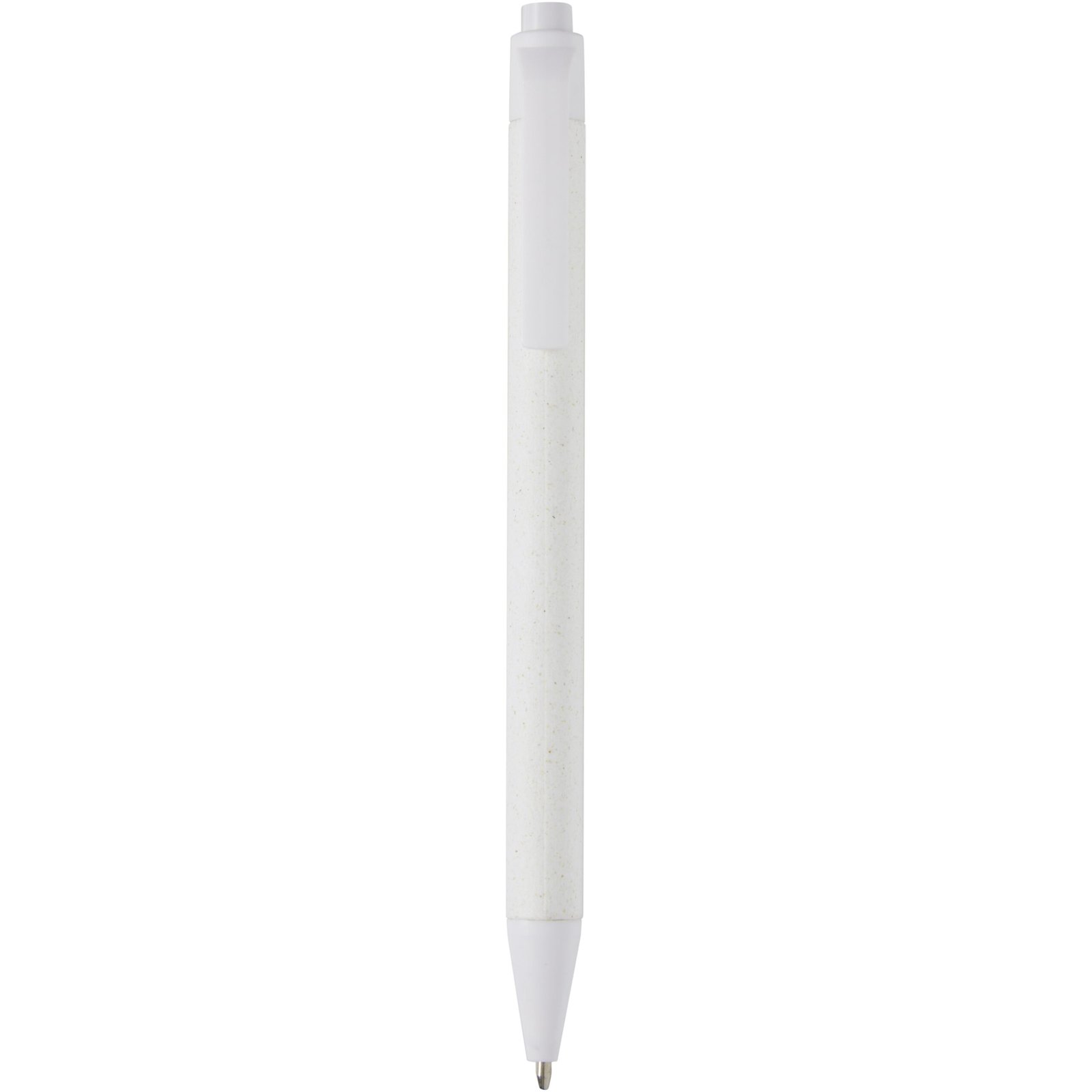 Lightweight ballpoint pen for everyday notetaking. The barrel is made from responsibly sourced crush paper. The brown paper contains the residue from coffee, the green from olives, and the white from corn. The bottom, clip, and tip are made of PLA plastic. Black ink. Writing length: 700 metres.