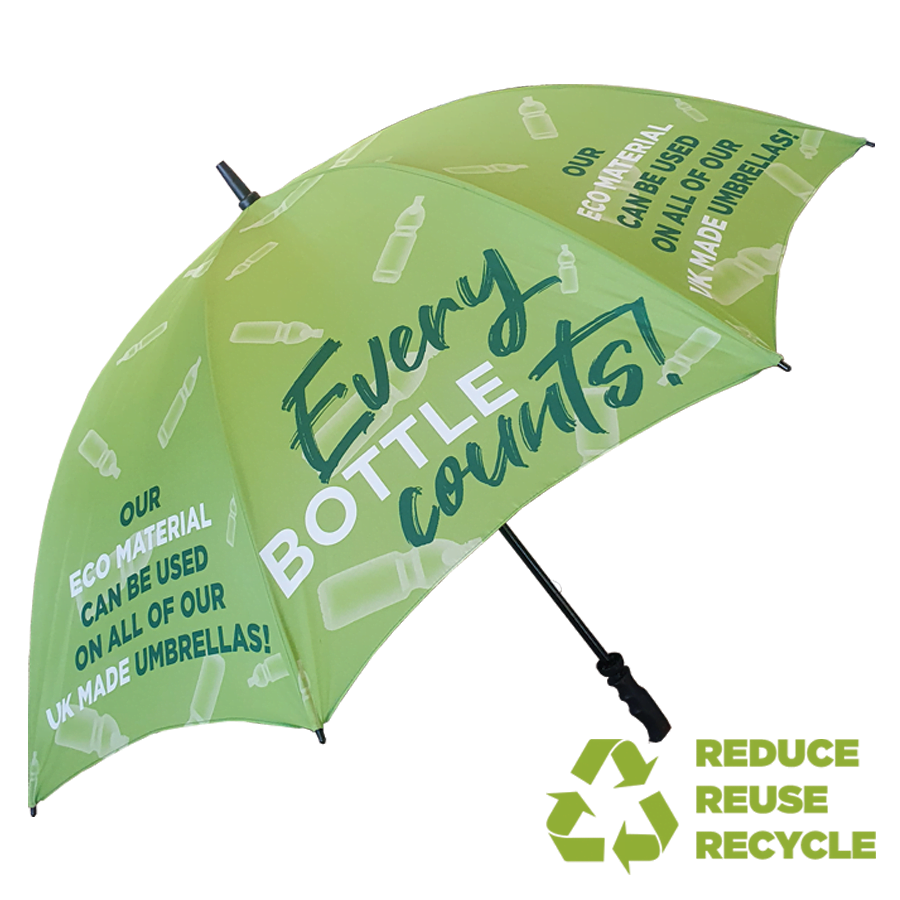 Consistently reliable fibreglass golf size umbrella with canopy made of recycled plastics