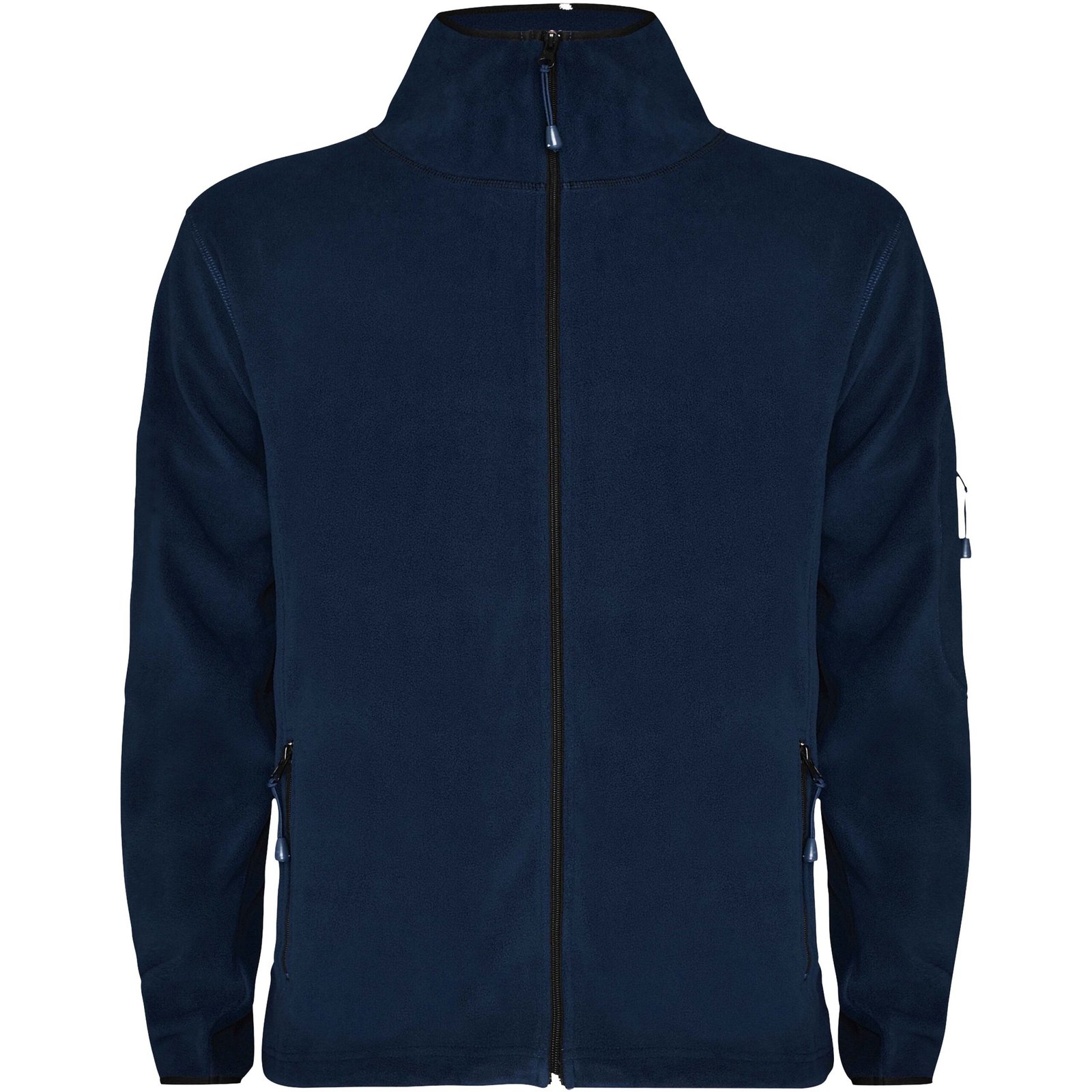 Micro fleece sweat jacket for everyday use with high collar, long sleeves and contrasting rib. Pocket with contrasting zip on left sleeve and front contrasting zip. Seams on sides and chest. Elbow pads in same fabric.
