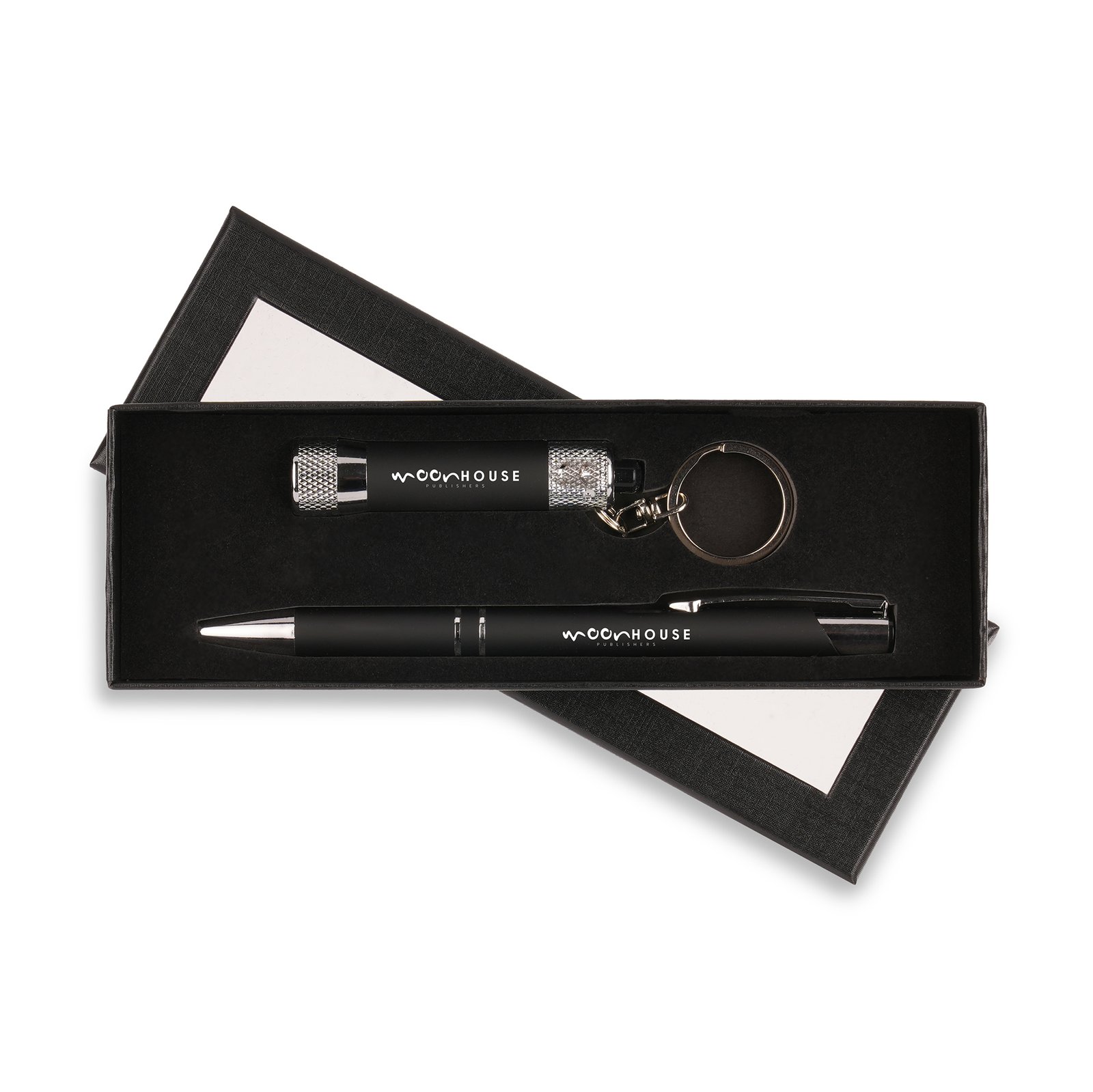 The Lumi soft feel 3 LED torch and Aladdin soft feel ball pen supplied in a purpose made gift box with a foam insert and a window. All items to be supplied as a whole set.