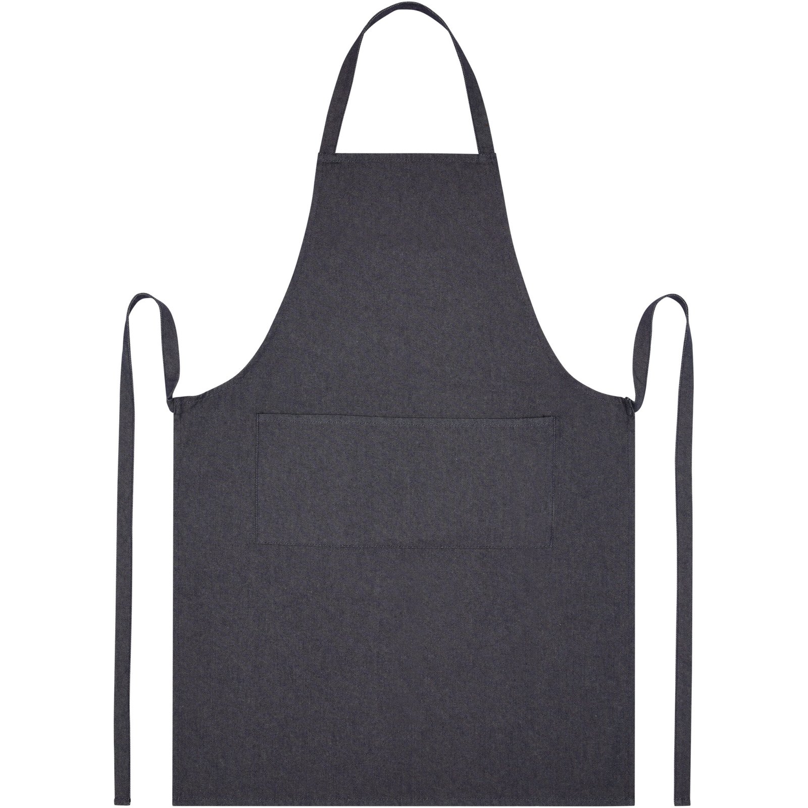 The Nima apron is made of 320 g/m² 70% recycled cotton and 30% recycled polyester making it thick and sturdy, and comfortable to wear. It features 2 adjacent pockets (each 22 x 20 cm), and a 1 metre tie-back closure. This apron also comes with an Aware™ tracer. This innovative feature allows users to trace the origins and journey of their item through a QR code, enhancing transparency in the supply chain and fostering a stronger connection between the product and its production process.