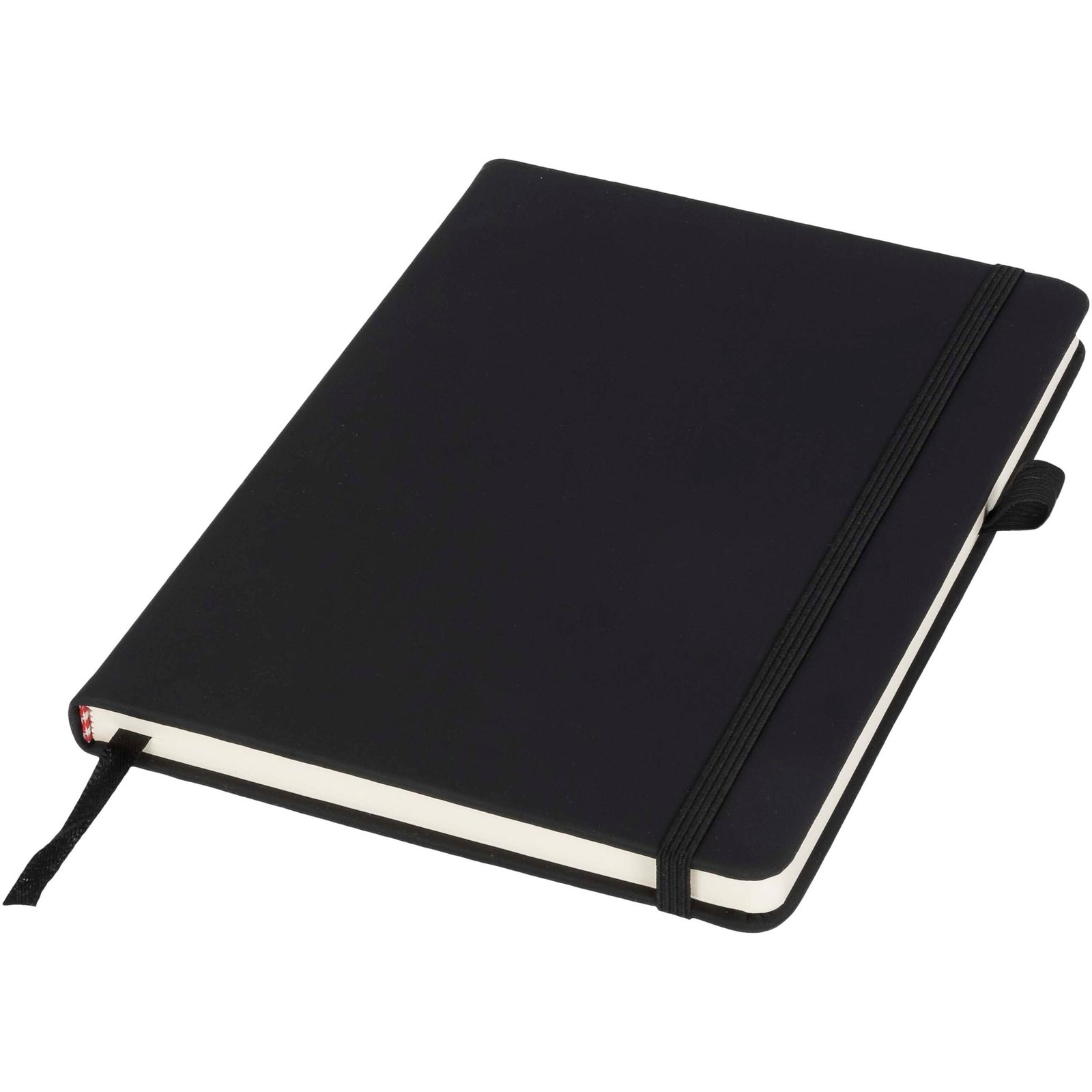The Noir notebook has a soft-feel black PU cover, for creating a tactile finish to the notebook. Each notebook has a coloured closure strap, pen loop and ribbon page marker. The notebook contains 96 sheets (70g/m2) cream lined paper.