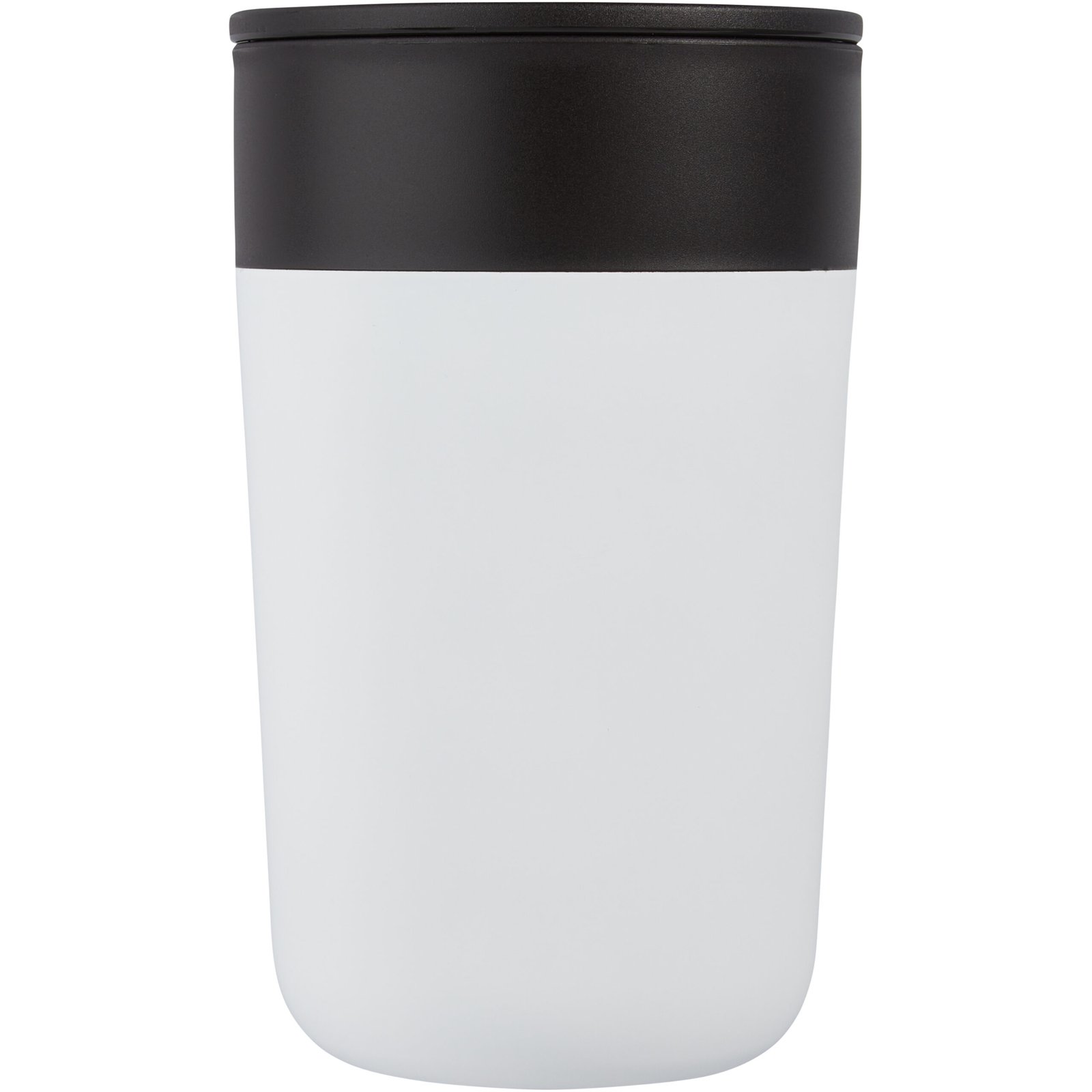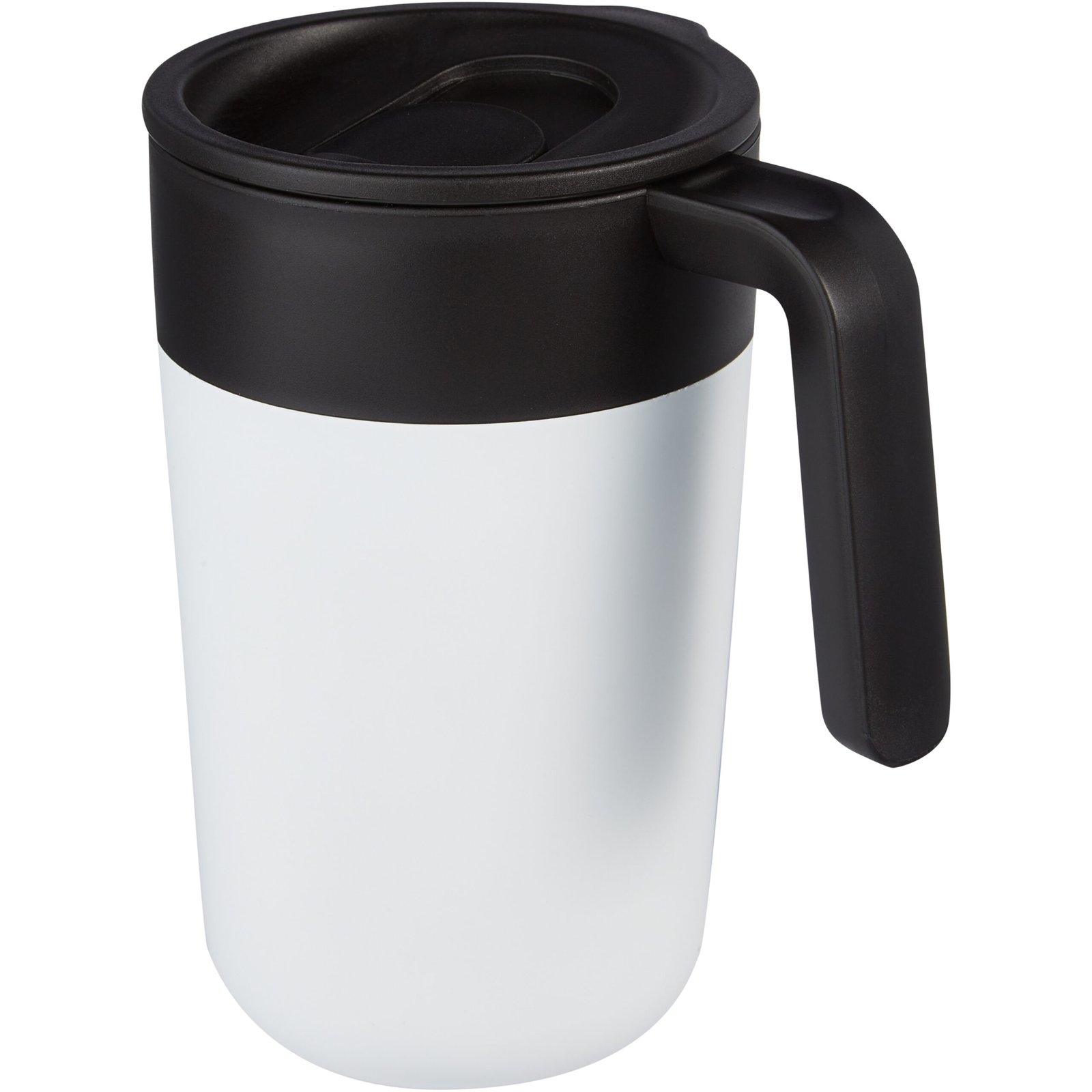 The stylish Nordia mug is constructed with stainless steel exterior and recycled plastic interior. The inner lid, slider, and handle are also made of recycled plastic. The lid has a sliding closure, making this mug perfect for enjoying your drinks on-the-go. BPA-free and tested and approved under German Food Safe Legislation (LFGB), and tested for phthalates content according to REACH regulations. Volume capacity is 400 ml. Hand wash recommended.