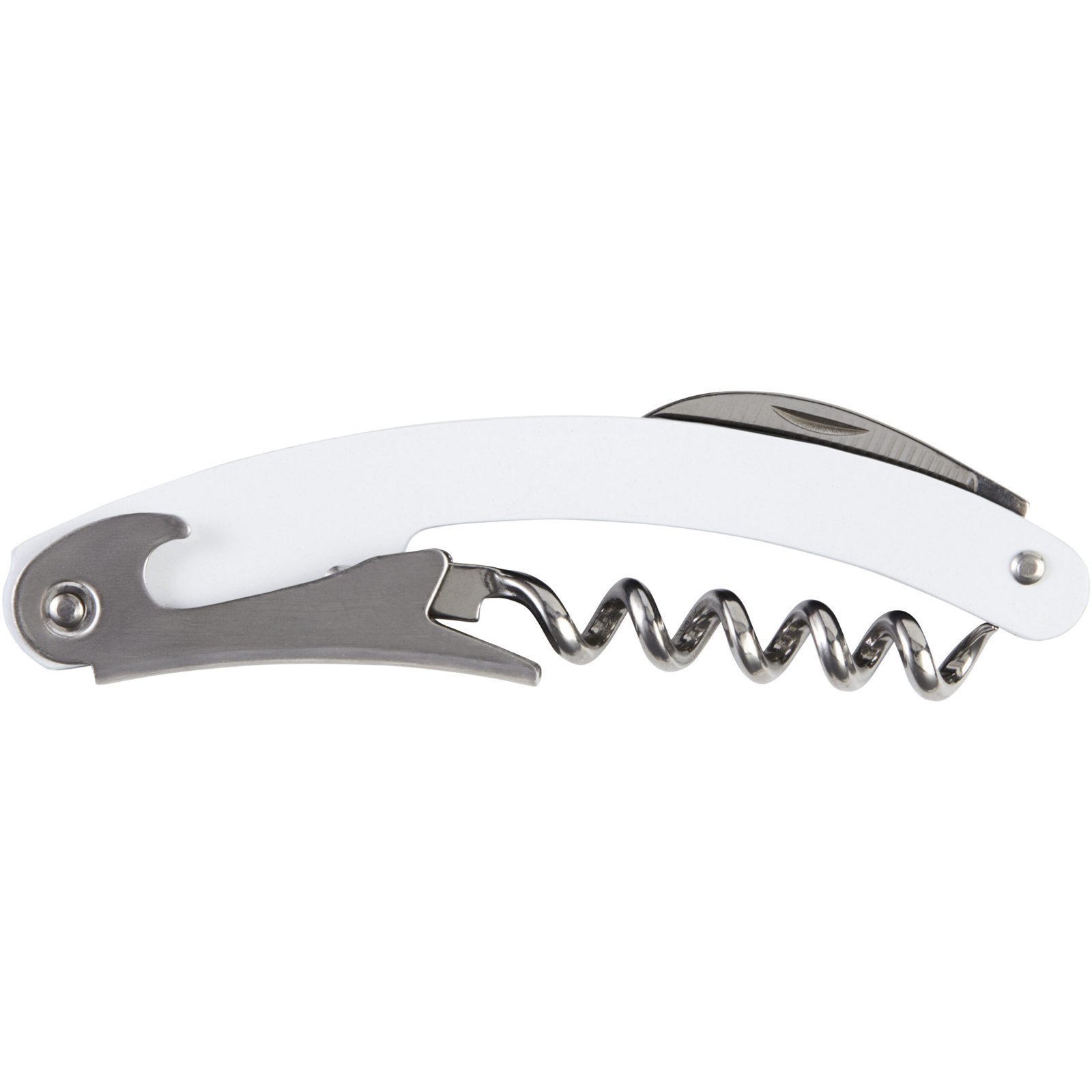 Stainless steel waitress knife with a coloured body featuring a foil cutter and bottle opener.