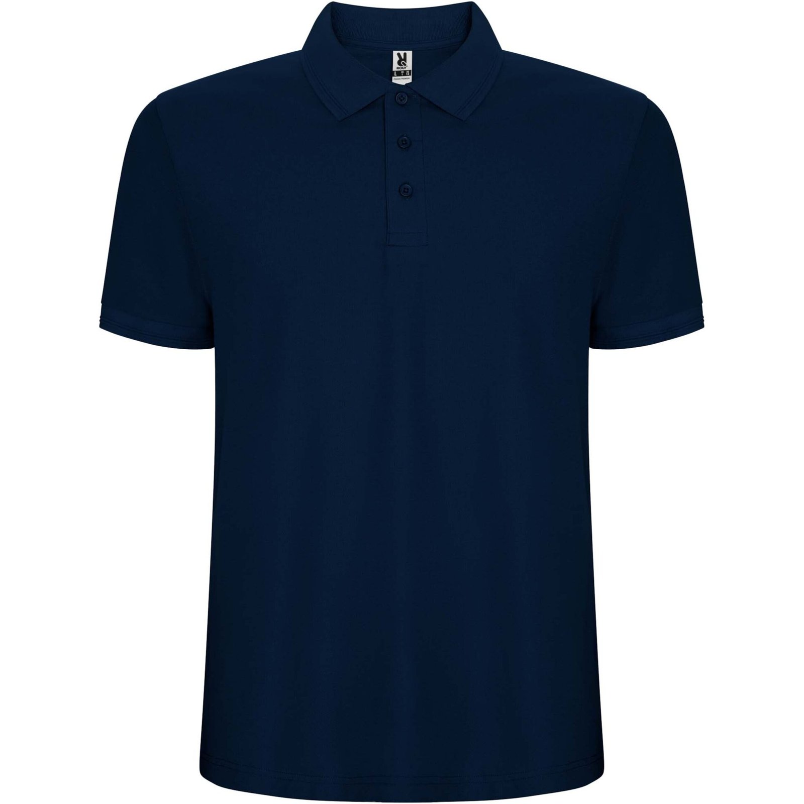 Short-sleeve polo shirt. Collar and sleeves edging in 1×1 ribbed fabric with detail. 3-button placket. Reinforced covered seams in collar. Side slits and optional pocket. Washable at 60 degrees. Removable label. Anti-pilling treatment.