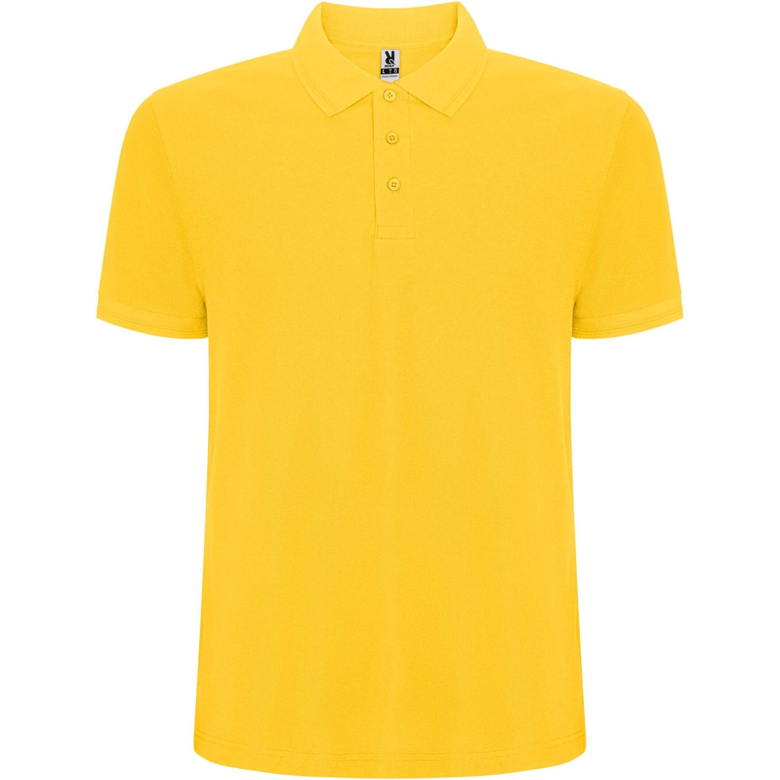 Short-sleeve polo shirt. Collar and sleeves edging in 1×1 ribbed fabric with detail. 3-button placket. Reinforced covered seams in collar. Side slits and optional pocket. Washable at 60 degrees. Removable label. Anti-pilling treatment.