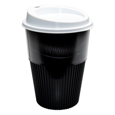 A vibrant full-colour printed reusable (and recyclable) plastic cup. The ridged body allows a firm grip and protects hands from heat. A wide choice of body colours, lids are black or white.
