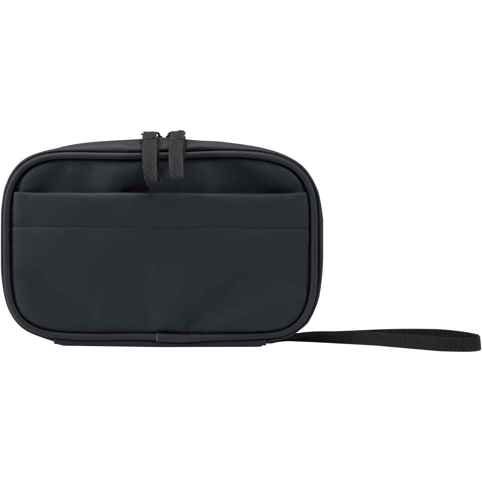 Made from GRS certified recycled PU leather with a matching RPET lining, this tech pouch is designed for travellers, remote workers, and tech enthusiasts. Compact and easy to carry in a backpack or cabin bag, it has a zipped main compartment with practical organisation features including an elastic pen loop, two mesh pockets for earbuds and small accessories, a reinforced divider, and multiple elastic loops to securely hold cables, USB drives, and chargers. The exterior includes a front pocket with hook-and-loop closure for quick access, along with a webbing handle for convenience. Finished with a water-resistant coating, it keeps your essentials protected wherever you go. Volume capacity: 1 litre.
