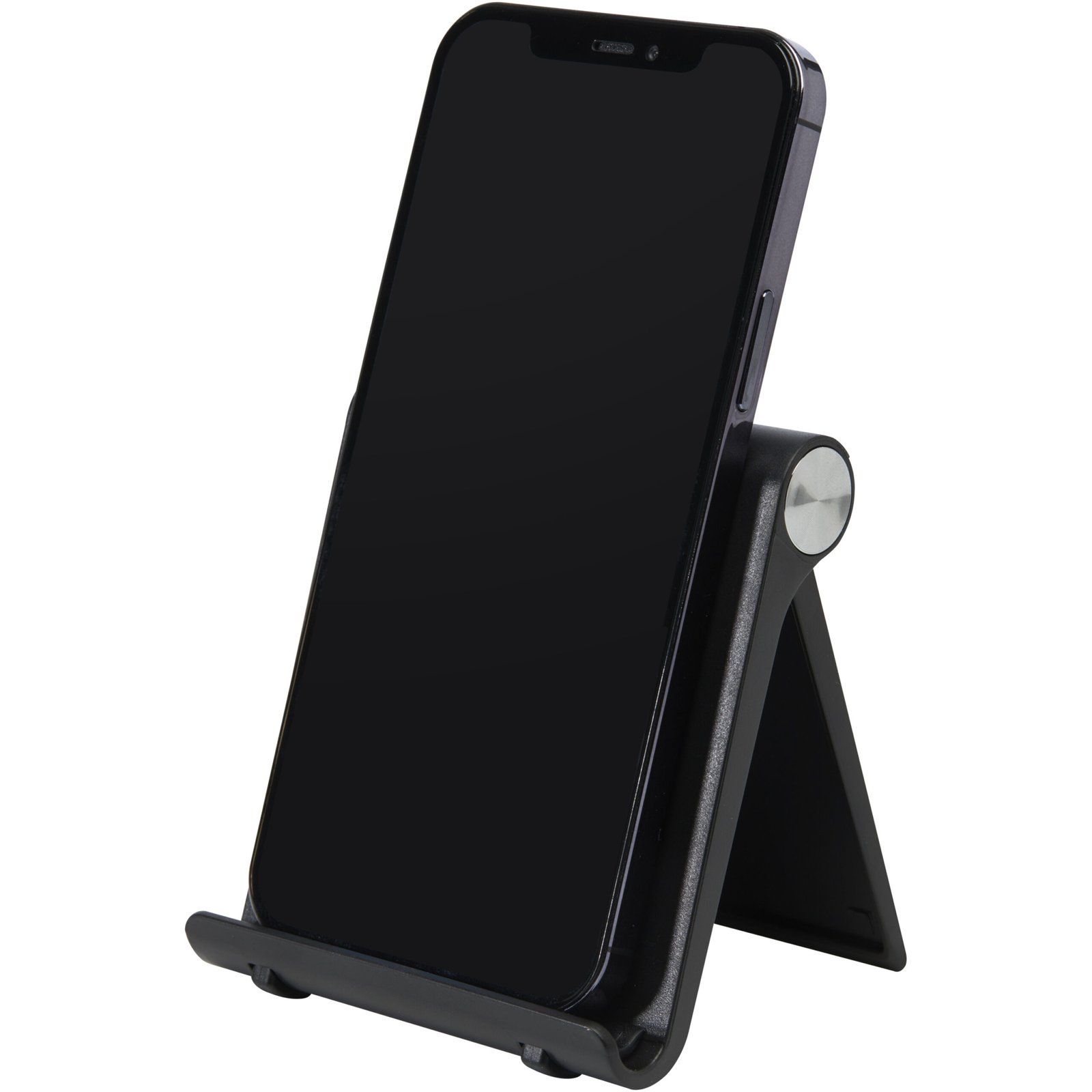 Phone and tablet stand compatible with all major phones and tablets that are less than 12mm thick, including iPhone, iPad, Samsung Galaxy / Tab, Google Nexus, HTC, LG, Nokia Lumia, and OnePlus. The stand is easily adjustable for multiple viewing angles. Large print area on the front panel.