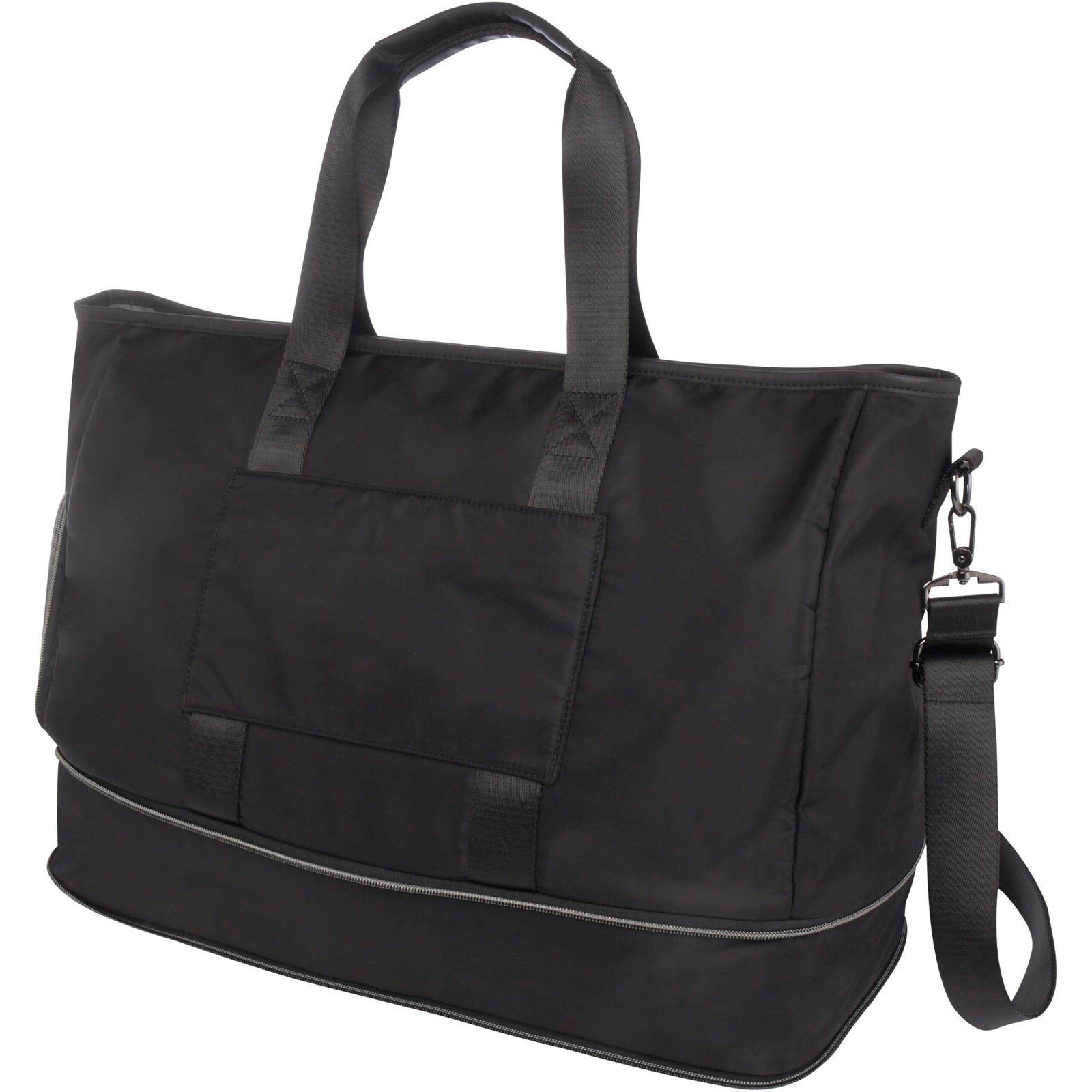 The Rhine expandable duffel bag effortlessly transforms itself with style for varied occasions with its sleek design and versatility. Crafted with high-quality recycled nylon, soft RPET lining, and premium PU leather elements. The duffel bag features a spacious main compartment with a large leak-proof TPU pocket, 2 sleeve pockets, a dedicated shoe compartment, a secure hidden pocket on the back (doubling as trolley strap), and detachable shoulder straps that can be adjusted for maximum comfort. What truly sets this duffel bag apart is the expandable layer, which can be extended up to 42 litres capacity. Capacity: 35-42 litres. Resistance up to 20 kg weight. PVC free.