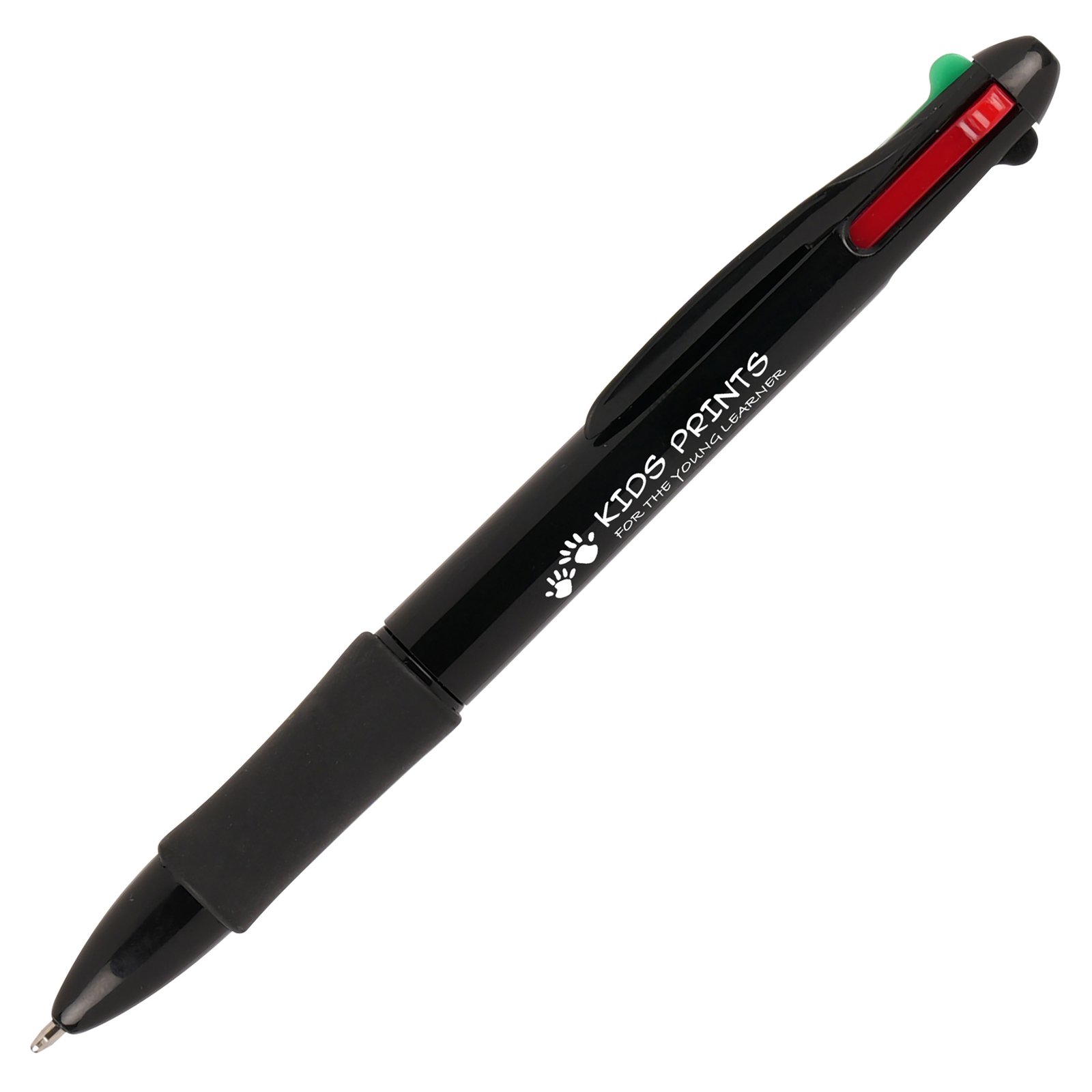 A useful RPET ball that holds 4 different colour ink refills including black, blue,red and green ink. Also features a comfort grip to ease pressure whilst writing. Recycled symbol pre-printed to the back of the pen.