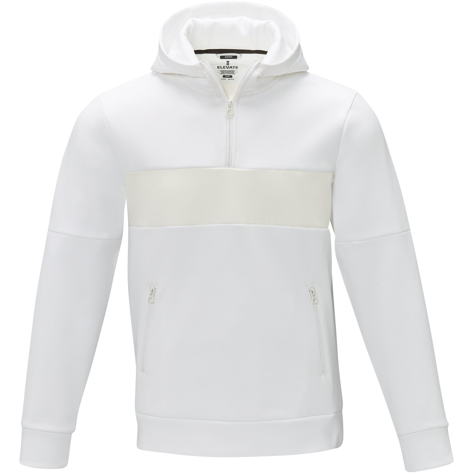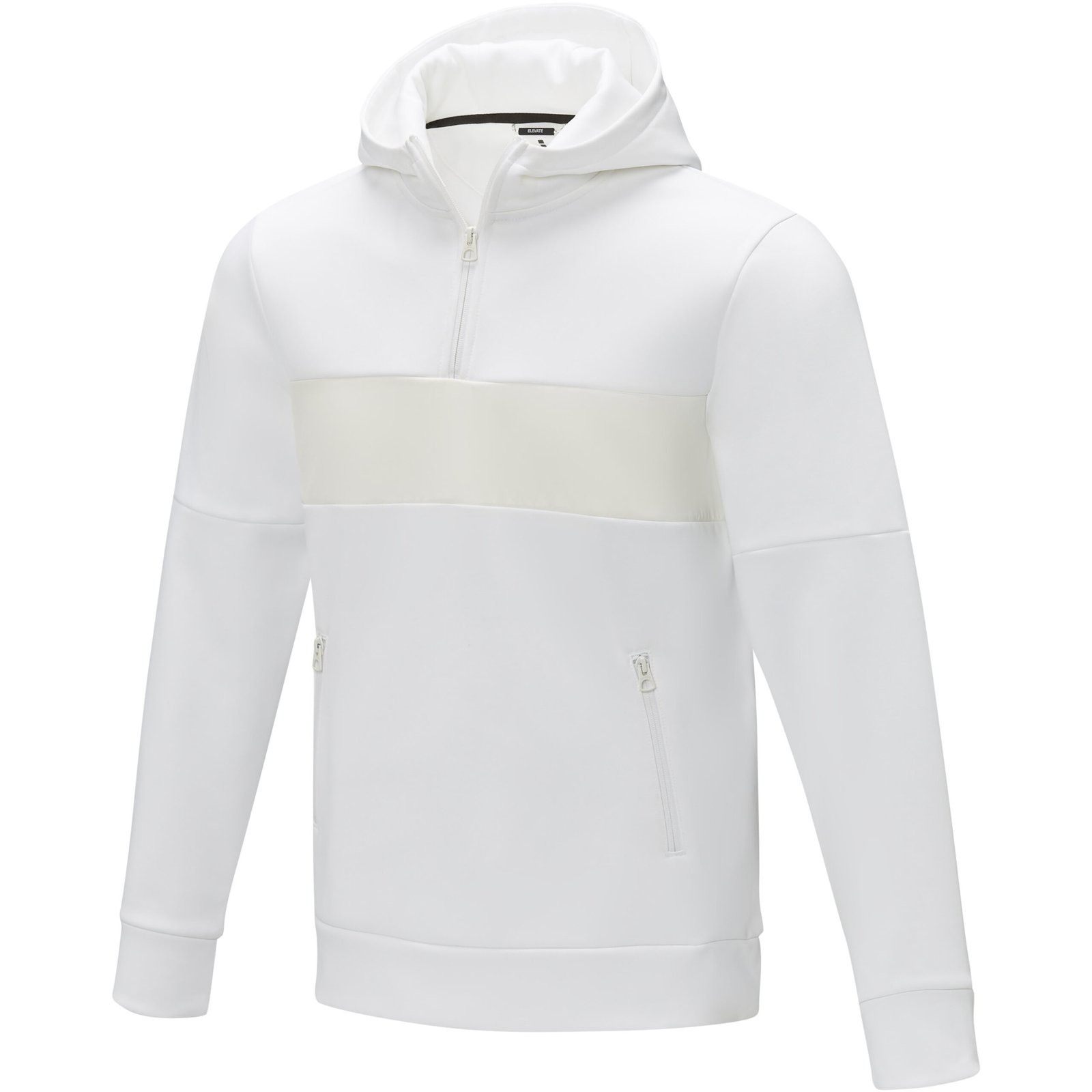 The Sayan men’s half zip anorak hooded sweater – a unique combination of performance and style. The anorak design combines fashion and function seamlessly, featuring a quarter zip for versatility in layering. Made from a 350 g/m² blend of polyester and Sorona® knit. The Sorona® fiber enhances the jacket’s eco-friendliness by incorporating a sustainable element without compromising on performance. The contrast fabric on the front panel, made of 280T ripstop nylon, adds to the design with its durability and texture and is the ideal location to showcase your brand. Whether you’re embarking on an outdoor adventure or simply navigating your daily routine, the Sayan hooded sweater effortlessly combines fashion with function.