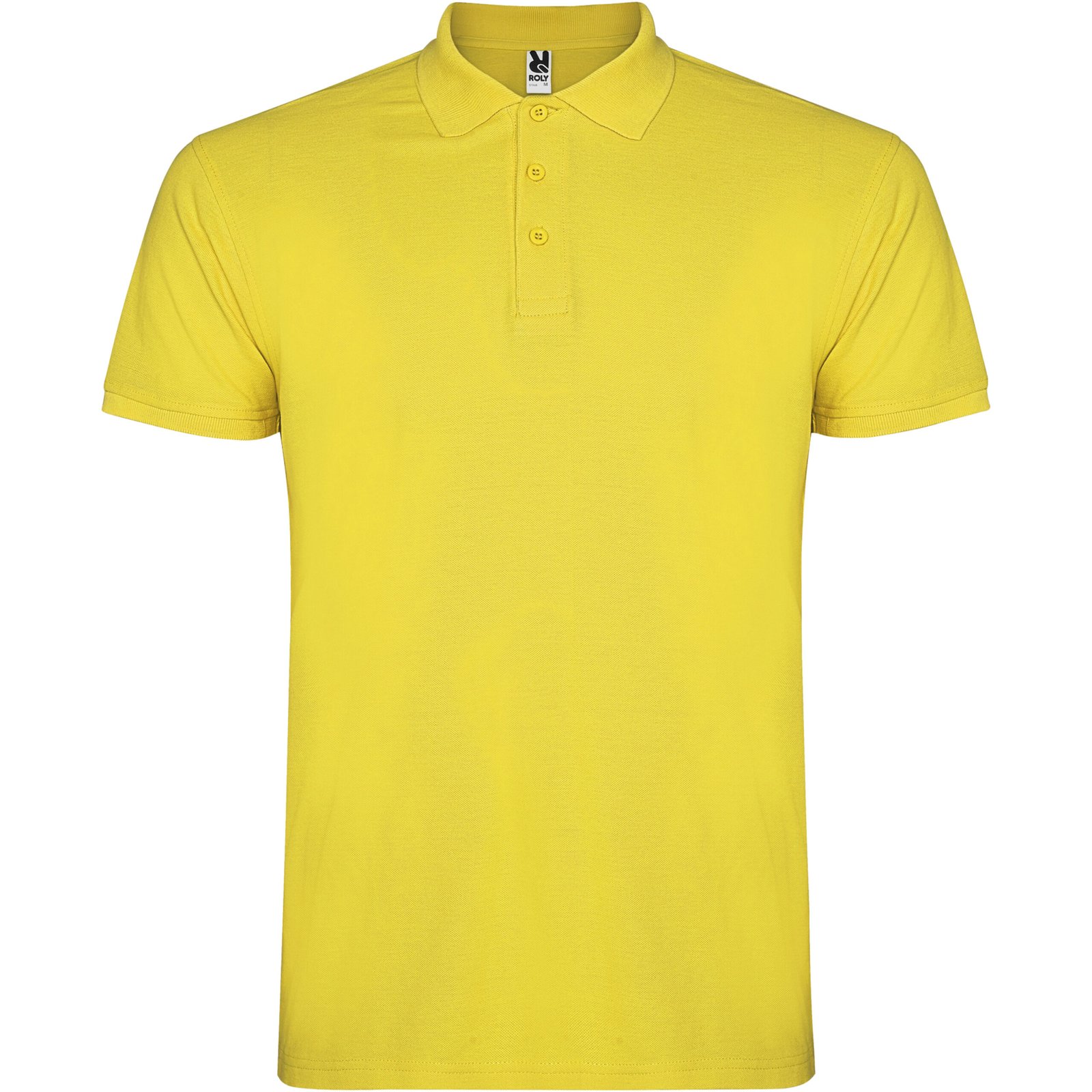 Short-sleeve polo shirt for kids. Reinforced covered seams in interior collar. 1×1 ribbed cuffs and collar. Side seams. 3-button placket and side slits. Optional pocket. Removable label. The model is 124 cm and is wearing size 5/6.