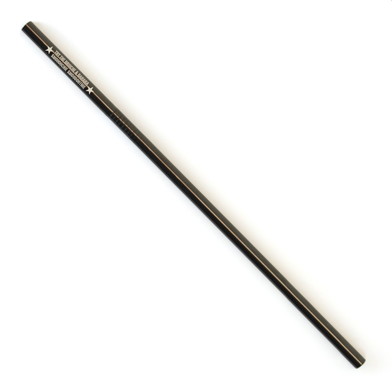 Straight Black stainless steel metallic metal straw. Cleaning brush and pouch available at an additional cost. Cleaning brush (ZF0062) and pouch (ZF0063) available at an additional cost.