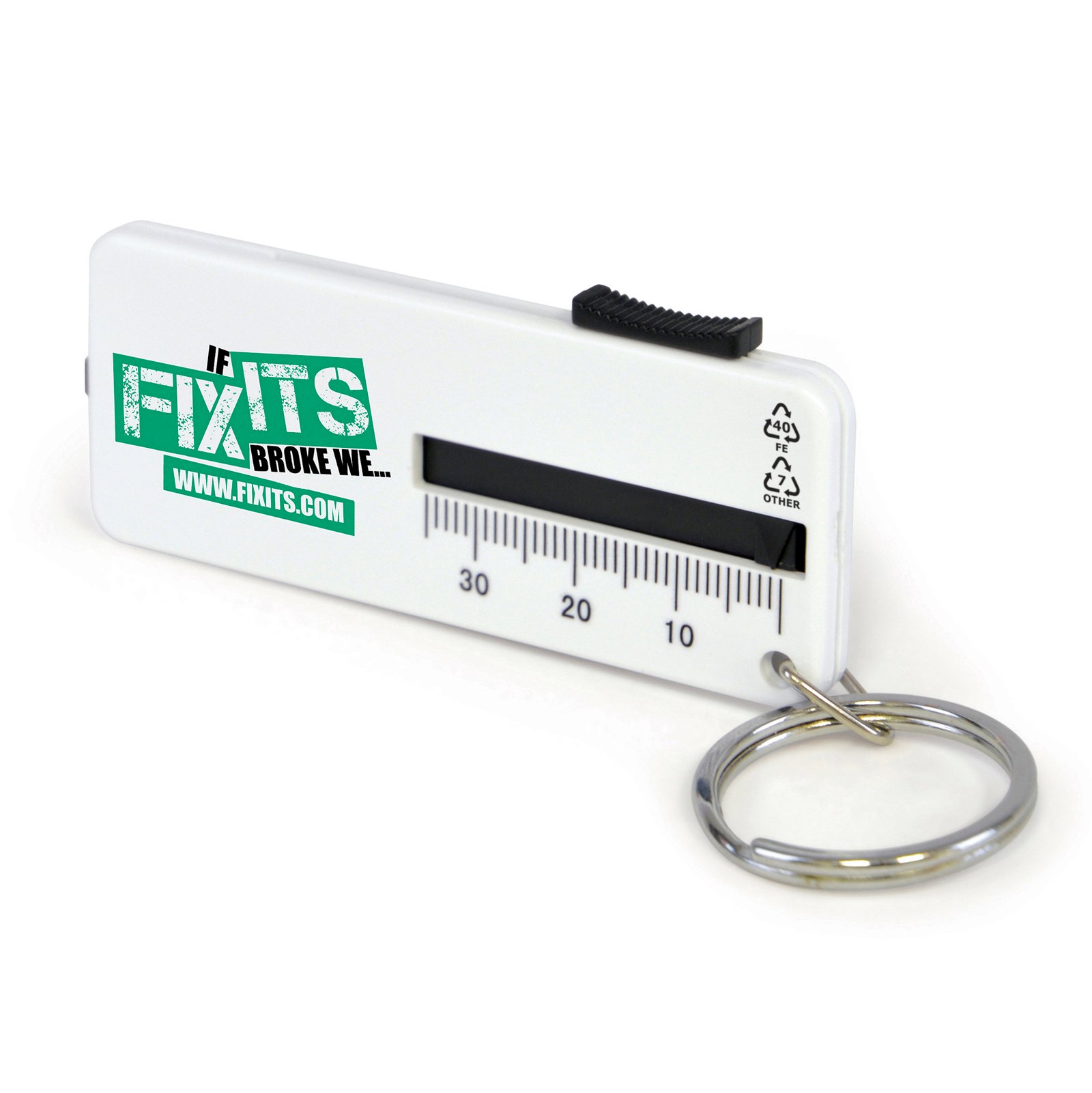 Tyre gauge with split ring keyring.