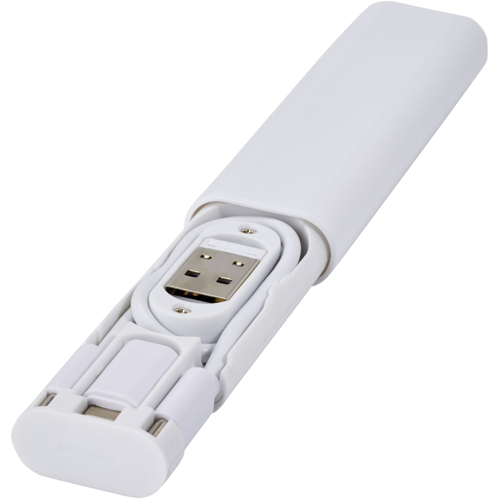 Modular data transfer and charging cable made from recycled plastic, delivered in an elegant storage box. The cable offers multiple charging solutions: Type-C and USB-A input, and Type-C/iOS/micro USB output. Thanks to all of these adapters and connectors, this cable allows you to charge most smartphones, cameras, power banks, earbuds etc. The cable has a maximum output power of 2A. Features an eject pin that comes in handy anytime you need to take out your phone’s SIM card. The storage box also has room to store a micro SD memory card as well as a nano SIM card, making this the perfect travel accessory. Cable length: 28 cm. Supplied in a 100% recycled kraft paper envelope.